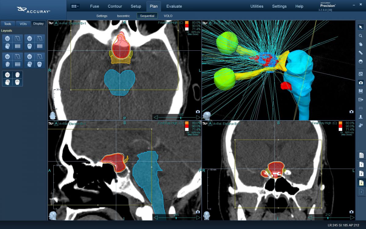 Η ακρίβειά του είναι της τάξης των 0,2-0,3 mm. Αυτό σημαίνει ότι κατά την τελική εκτίμηση του πλάνου θεραπείας του ασθενούς γνωρίζουμε επακριβώς τη δόση της ακτινοβολίας που θα λάβει κάθε δέκατο του χιλιοστού του στόχου και των γειτνιαζόντων ευαίσθητων ανατομικών δομών. Με τον τρόπο αυτό επιτυγχάνεται η μέγιστη αποτελεσματικότητα της θεραπείας και ακόμα πιο σημαντικό η μέγιστη προστασία των υγιών ιστών.